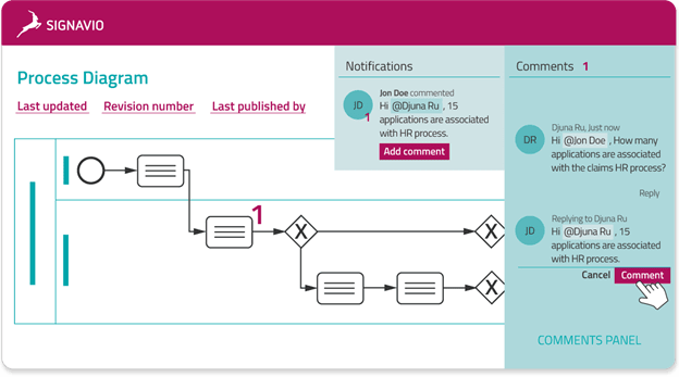 Documenting Processes: We use tools such as Signavio, Visio and LucidChart to document business processes. What’s nice about Signavio is that it has a collaboration hub, enabling practitioners to view the desired project in an easy-to-understand online environment.